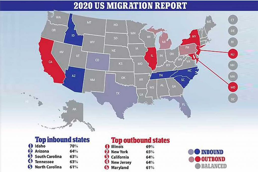 People are fleeing New York, Illinois and California for Texas, Idaho, Arizona and the Carolinas, according to data from truck rentals and itineraries from moving companies. In addition, states of Florida and Colorado also experienced a greater influx of movers. Despite the pandemic the company claim people continued to move at rates that were comparable to 2019.