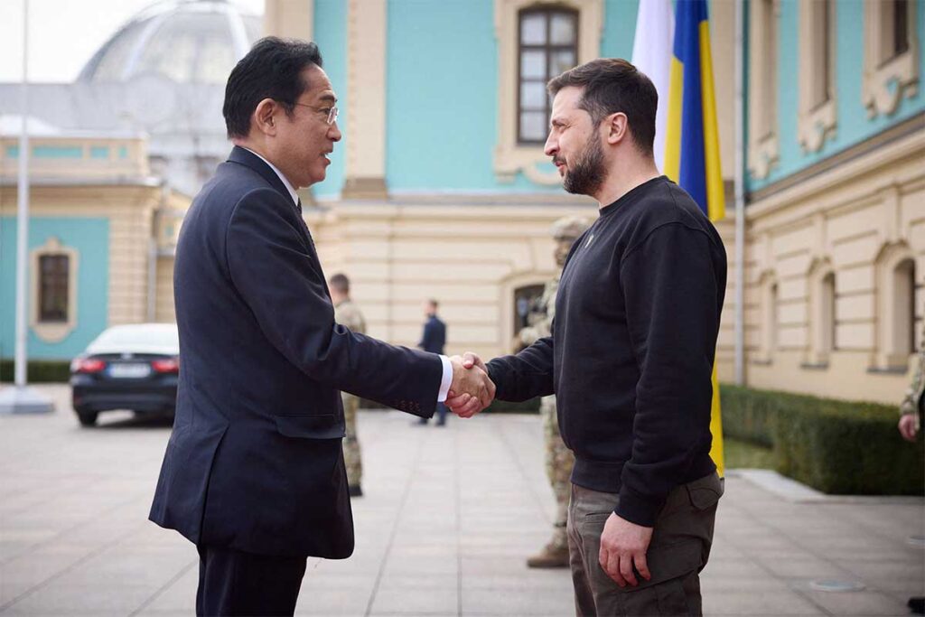 Prime Minister of Japan Fumio Kishida meets with President Voldymyr Zelensky promising to give support for Ukraine, along with the United States, against the monster of Russia President Putin who slaughters women and children in Ukraine. Russia has more land than it can even take care of. Russia has more square footage of land than China and India combined. These two countries have approximately three billion people, yet Russia has barely 150 million people.